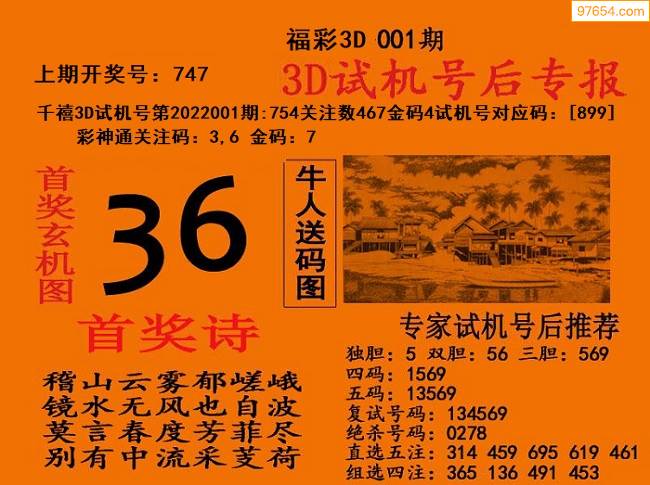 22年003期天中试机号后分析定胆(原创贴) 上期金码中2