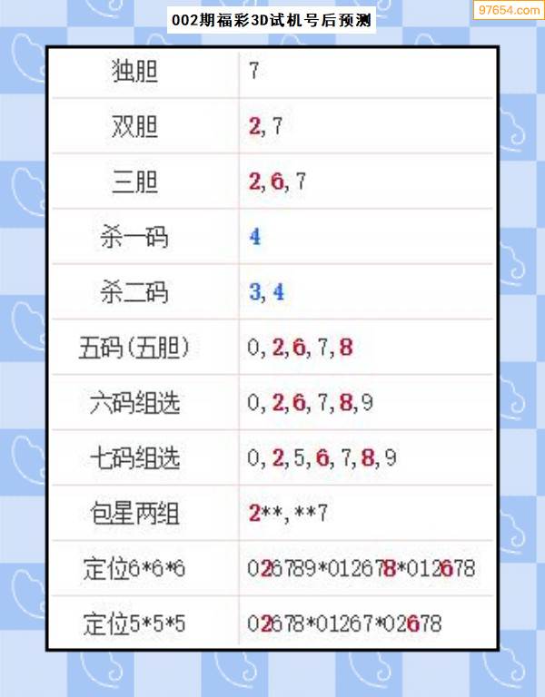 福彩3D003期专家联盟试机号后推荐双胆