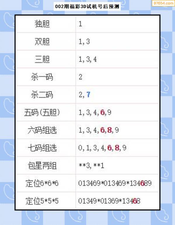 福彩3D003期专家联盟试机号后推荐双胆